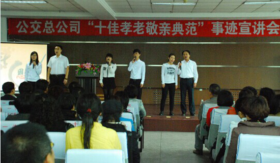 為進(jìn)一步弘揚(yáng)社會(huì)主義核心價(jià)值觀和中華民族尊老敬老、愛老養(yǎng)老的傳統(tǒng)美德,強(qiáng)化職工的孝老敬親意識(shí),市公交總公司工會(huì)于9月初開始在公司全體職工中開展了尋找“公交孝老敬親典范”活動(dòng)。在近一個(gè)月的評(píng)選中,通過層層宣傳發(fā)動(dòng),職工自薦、基層推薦,逐級(jí)審核把關(guān)、總公司評(píng)審小組審定等程序,評(píng)選出公交總公司“孝老敬親典范” 10名、“優(yōu)秀孝老敬親模范”56名。 29日,總公司工會(huì)在十樓會(huì)議室召開了“十佳孝老敬親典范”事跡宣講會(huì)。會(huì)上,8名來自一線調(diào)度員、保潔員、充值員和修理工的“十佳孝老敬親典范”親身講述了自己孝老敬親的感人故事,他們的精彩宣講讓在場(chǎng)的觀眾熱淚盈眶。在宣講中,還進(jìn)行了詩(shī)朗誦《感恩父母》、小提琴演奏《時(shí)間都去哪了》、歌曲《感恩的心》等文藝表演,將活動(dòng)推向了高潮。 此次孝老敬親典范事跡宣講活動(dòng)為推進(jìn)企業(yè)精神文明建設(shè),弘揚(yáng)孝文化、營(yíng)造崇尚孝道的良好社會(huì)風(fēng)尚,讓大家學(xué)習(xí)我們身邊的榜樣,人人爭(zhēng)當(dāng)孝老敬親典范,產(chǎn)生了積極的影響和有力地促進(jìn)作用。 |