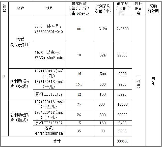 (1)車用制動器襯片的技術參數(shù)要求按《GB5763-2008汽車用制動器襯片》執(zhí)行; (2)帶緩速器的鼓式制動器襯片行駛里程應大于6萬公里,盤式制動器襯片應大于6萬公里。 (3)投標人須提供投標產(chǎn)品由國家權威部門、國家認可實驗室或具有資質(zhì)的第三方實驗室出具的質(zhì)檢報告(其中,國家認可實驗室證書、具有資質(zhì)的第三方實驗室證書也需一并附在響應文件中)。 3.包裝要求 制動器襯片要求有完好的包裝,要適用于長途運輸和多次搬運并具有一定的防腐和防潮等措施,以保證制動器襯片的質(zhì)量。 4.項目說明 (1)本項目采購內(nèi)容共1個合同包,投標人對所投包的采購內(nèi)容必須全投; (2)總報價不能超過總價最高限價,否則總報價按總價最高限價處理。每個型號的報價不能超過該型號采購單價最高限價,否則報價按單價最高限價處理。 二、合格投標人的資格條件 投標人應具有以下資歷: 1.具有獨立法人資格、良好的信譽,獨立履行合同能力和一定的資金墊付能力。 2.投標人必須為投標產(chǎn)品的生產(chǎn)廠家或生產(chǎn)廠家正式授權的代理商。 3.公交車用制動器襯片的生產(chǎn)企業(yè)必須通過ISO9001:2008或ISO9001:2015或ISO/TS16949質(zhì)量體系認證。 4.公交車用制動器襯片須近三年被地市級公交企業(yè)批量使用(500個以上)或為客車廠批量配套(500個以上),提供合同和結賬發(fā)票復印件。 5.符合《中華人民共和國政府采購法》第二十二條規(guī)定應當具備的條件。 6.應自覺抵制采購領域商業(yè)賄賂行為。 7.能夠提供快速、良好的售后服務。 8.投標人所投產(chǎn)品須為正品行貨。 9.投標人未被最高人民法院在“信用中國”網(wǎng)(www.creditchina.gov.cn)中列入失信被執(zhí)行人名單。 三、報名須知 有意向參與本次采購的供應商可于2019年 1月23日至1月30日(節(jié)假日除外)到招標辦公室(鞍山市鐵西區(qū)八家子街2號,物資供應分公司會議室)報名。 報名時需攜帶以下文件: 1.營業(yè)執(zhí)照副本復印件并加蓋投標人公章。 2.代理商須出具生產(chǎn)廠家頒發(fā)的代理授權書復印件并加蓋投標人公章。 3.所投產(chǎn)品的“ISO9001:2008”或“ISO9001:2015”或“ISO/TS16949”質(zhì)量體系認證證書復印件并加蓋投標人公章。 4.公交車用制動器襯片近三年被地市級公交企業(yè)批量使用(500個以上)或為客車廠批量配套(500個以上)的合同和結賬發(fā)票復印件加蓋投標人公章。 5.投標產(chǎn)品由國家權威部門、國家認可實驗室或具有資質(zhì)的第三方實驗室出具的產(chǎn)品質(zhì)量符合國家標準的質(zhì)檢報告(其中,國家認可實驗室證書、具有資質(zhì)的第三方實驗室證書也需提供)。 四、資格審查 本項目投標人的資格條件在評審時由談判小組的資質(zhì)評審專家進行審查。投標人應在響應文件中按采購文件的規(guī)定和要求附上資格證明文件,若提供的資格證明文件不全或不實,將導致其響應無效或投標人資格被取消。 五、遞交響應文件截止時間、開標時間及開標地點 遞交響應文件截止及開標時間:1月31日早8:30 遞交響應文件及開標地點:鞍山市交通運輸集團有限公司14樓會議室,屆時請投標人的法定代表人或其授權代表按時參加采購會議。 投標人當天需提前十五分鐘到開標地點繳納投標保證金。采購會議開始前五分鐘停止收取保證金,過時一概不予收取。 六、響應文件的送達 響應文件必須在遞交響應文件截止時間前送達開標地點,逾期送達或密封和標注不符合采購文件規(guī)定的響應文件恕不接受。本次采購不接受郵寄的響應文件。 七、采購單位、地址和聯(lián)系方式 采購單位:鞍山市交通運輸集團有限公司 地 址:鞍山市鐵東區(qū)民生東路1號 聯(lián) 系 人:陳瑩 聯(lián)系電話:0412-5600945 手 機: 15241271775 |