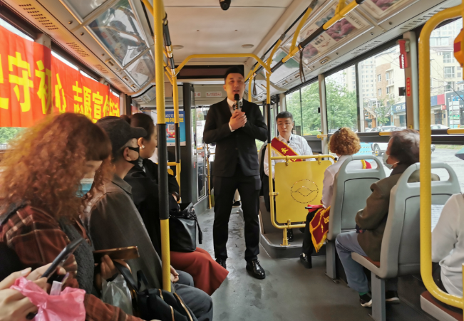 為充分發(fā)揮公交車流動(dòng)性強(qiáng)、宣傳面廣的優(yōu)勢(shì),交運(yùn)集團(tuán)的車廂文藝演出將繼續(xù)走進(jìn)各條公交線路,并在部分公交車廂懸掛國(guó)旗、黨旗,張貼黨史故事,做到學(xué)史明理、學(xué)史增信、學(xué)史崇德、學(xué)史力行,以昂揚(yáng)姿態(tài)奮力開啟全面建設(shè)社會(huì)主義現(xiàn)代化國(guó)家新征程,以優(yōu)異成績(jī)迎接建黨一百周年。