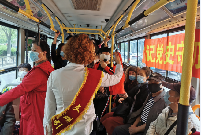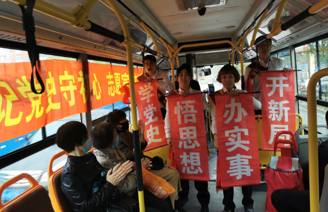 為慶祝中國(guó)共產(chǎn)黨成立100周年,豐富黨史學(xué)習(xí)教育形式,落實(shí)鞍山“市委工作法”,構(gòu)建“三個(gè)互動(dòng)”體系,交運(yùn)集團(tuán)通過(guò)走進(jìn)車廂表演的方式,將公交車廂打造成為流動(dòng)的黨史學(xué)習(xí)基地。